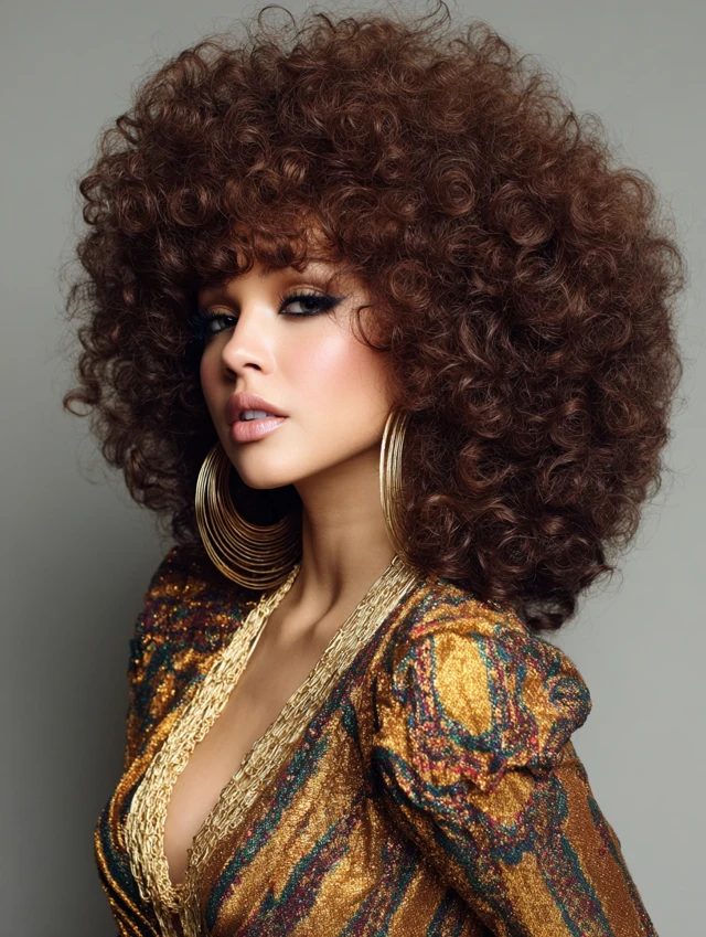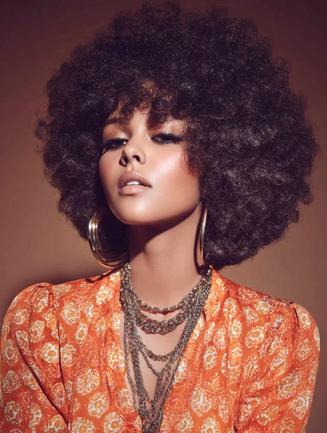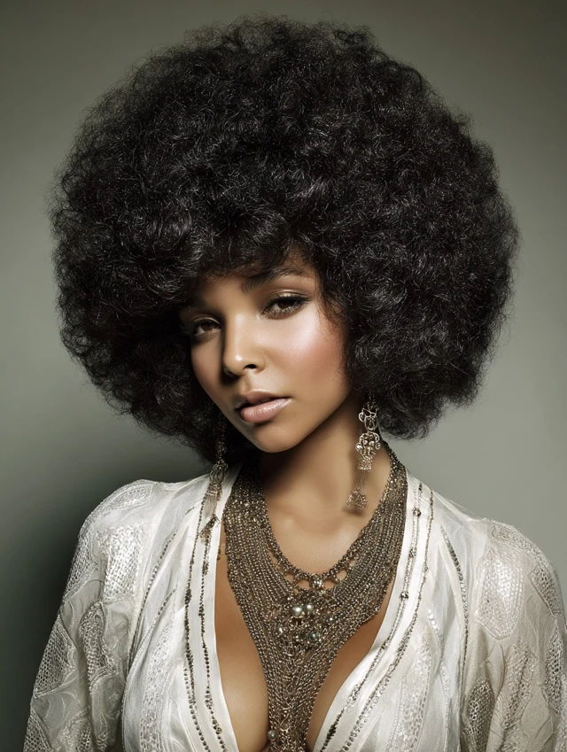 Afro textures were iconic in the 70s, combining boldness and natural beauty.