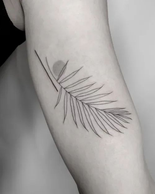 A palm leaf tattoo signifies peace, prosperity, and protection. Palm trees are commonly associated with tropical destinations and a sense of escape, while the palm leaf itself represents resilience and the ability to thrive in different environments. A minimalist palm leaf tattoo conveys these ideas in a simple, elegant design. Common placements include the forearm, ankle, or along the side of the body, where the graceful lines can flow naturally with the contours of the skin.