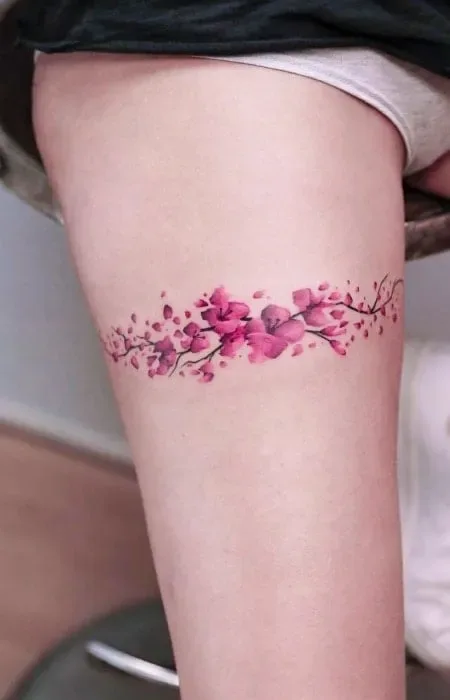 A cherry blossom branch tattoo symbolizes beauty, fleeting moments, and the transient nature of life. Cherry blossoms bloom briefly each year, reminding us to appreciate the present and embrace life’s temporary phases. The minimalist design often features just a few delicate flowers, capturing the elegance and softness of the blooms. This tattoo is perfect for those who appreciate nature’s fleeting beauty and seek a meaningful reminder of living in the moment. Ideal placements include the forearm, shoulder, or side of the body.