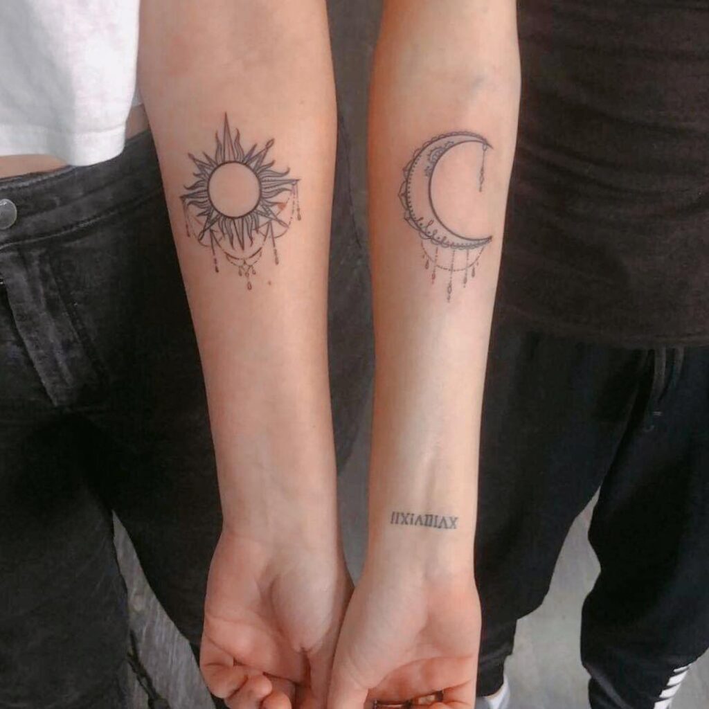Matching tattoos are identical—like twin symbols or mirrored phrases. Complementary tattoos are more creative: one of you gets the sun, the other the moon; one gets a key, the other a lock. Think about what suits your dynamic best. You don’t have to match perfectly to represent harmony.