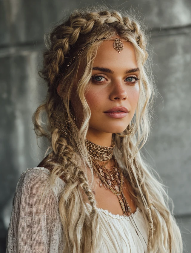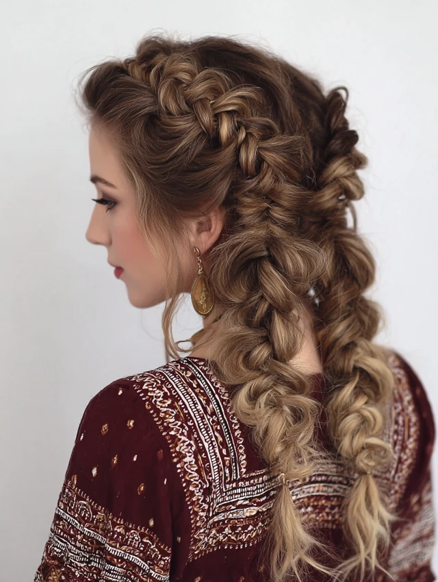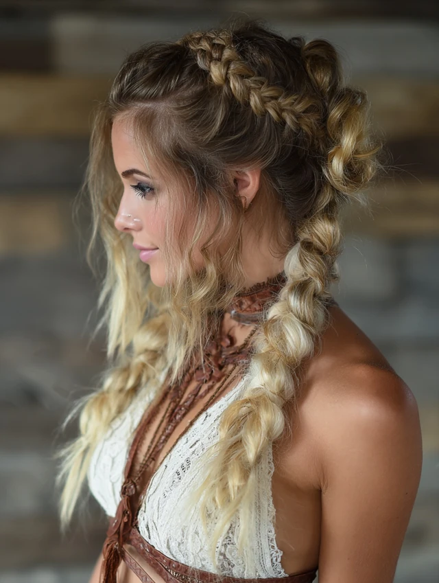- Braiding Style: Loose fishtails, waterfall braids, or messy Dutch braids.