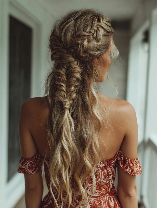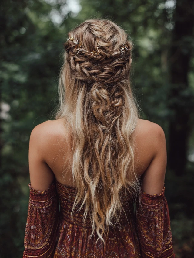- Half-Up Boho Braid: Effortless, flowy, and festival-ready.