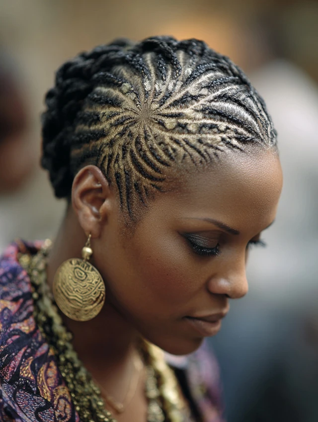 - Cornrows: Braided close to the scalp, often in creative patterns