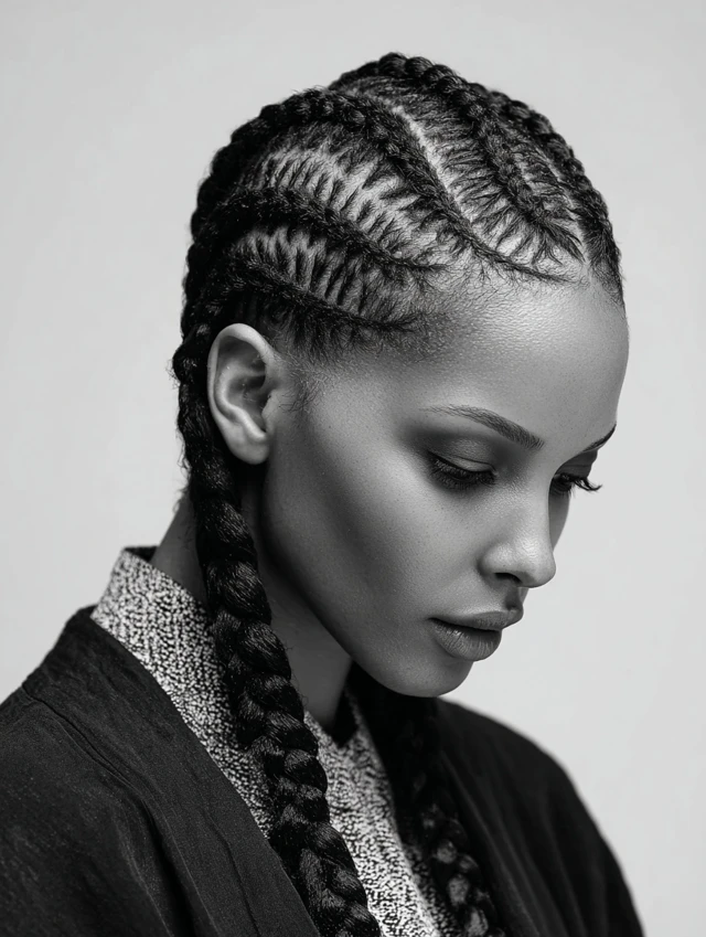 - Ghana Braids / Feed-In Braids: Gradually fed hair for seamless, intricate designs