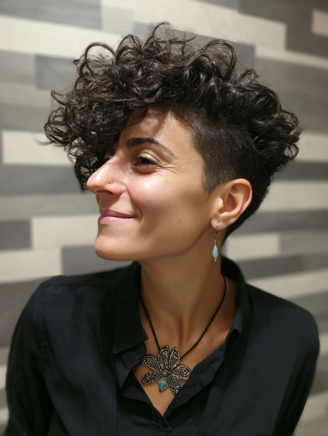 Curls make this cut even more dimensional — shorter layers add shape and bring out curl patterns beautifully.