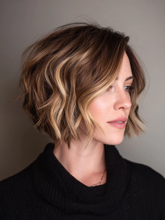 Strategic highlights or balayage bring depth and dimension to textured bobs, making each layer pop.