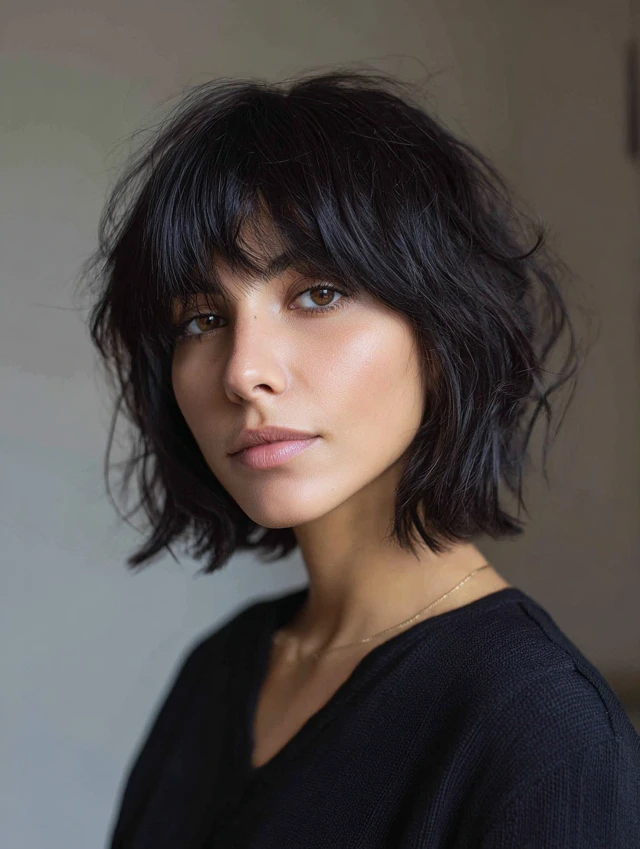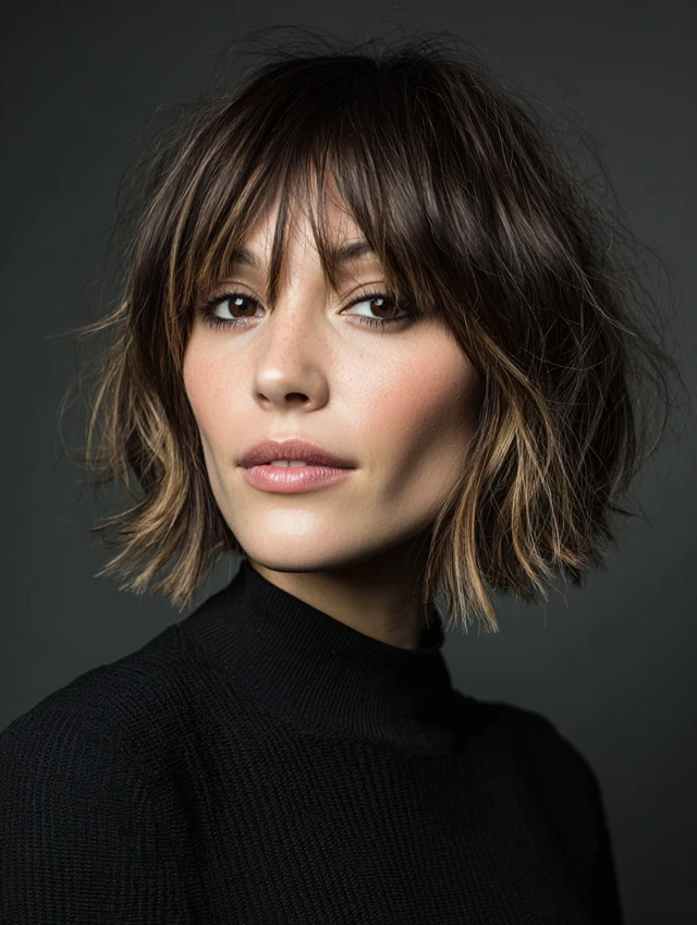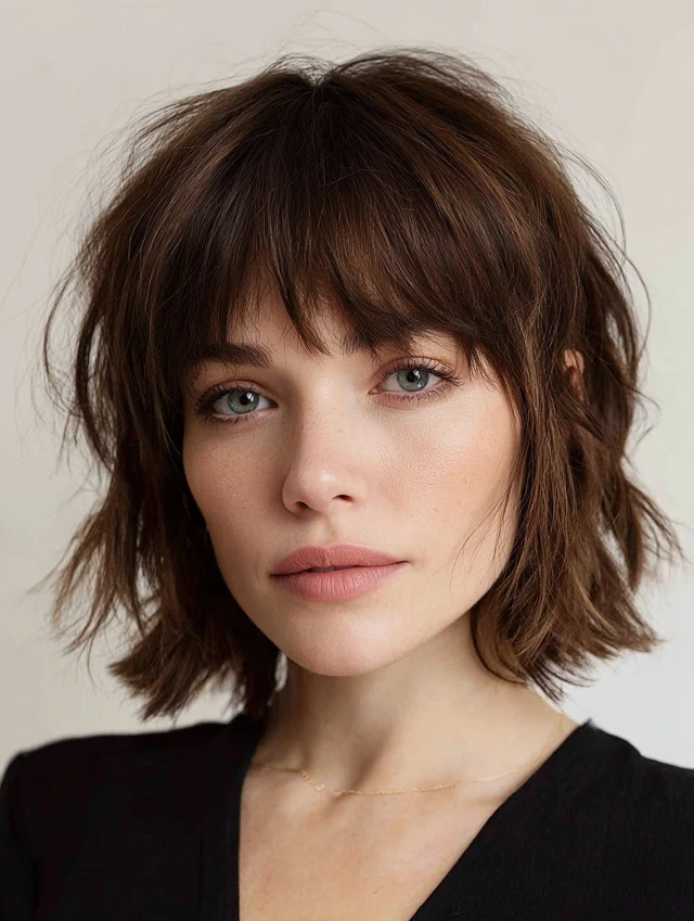 1. Textured Choppy Bob with Wispy Bangs
