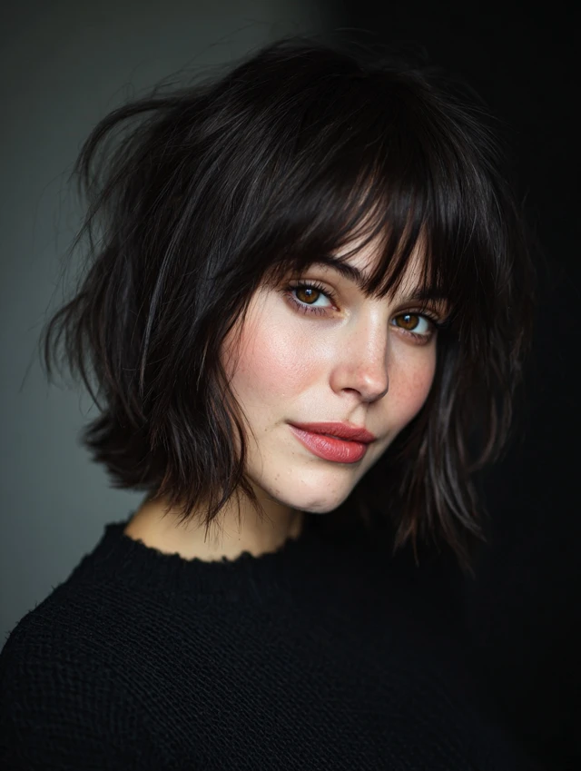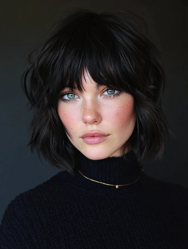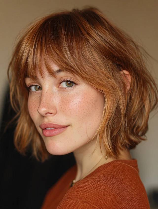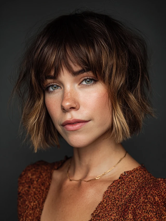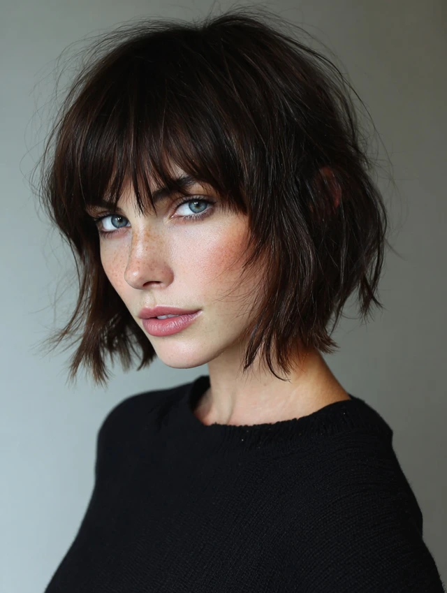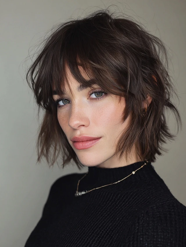 5. Shaggy Choppy Bob with Curtain Bangs