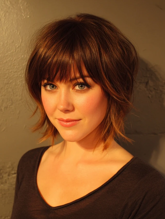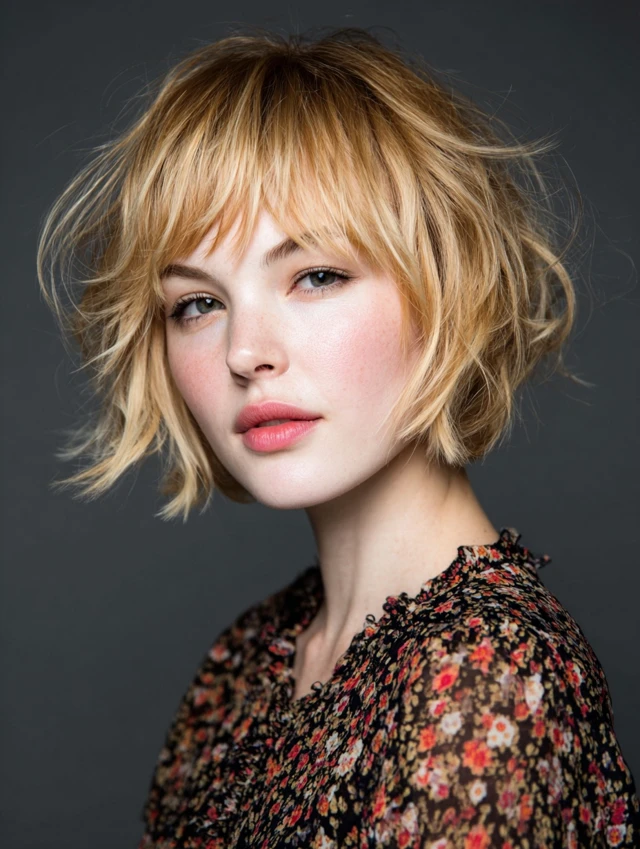 Short layers and soft bangs create lift, body, and a fuller appearance.