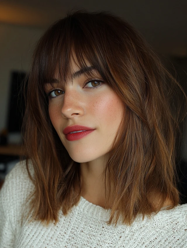 2. Shoulder-Length Choppy Lob with Bangs