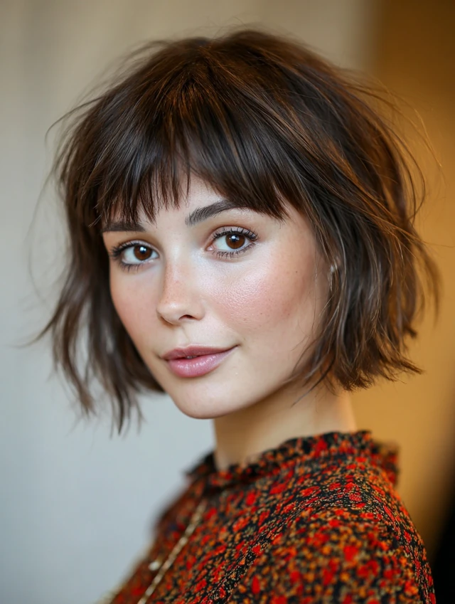 3. Short Choppy Bob with Light Bangs