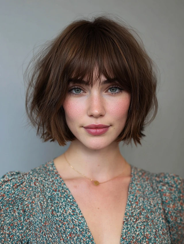 1. Classic Choppy Bob with Wispy Fringe