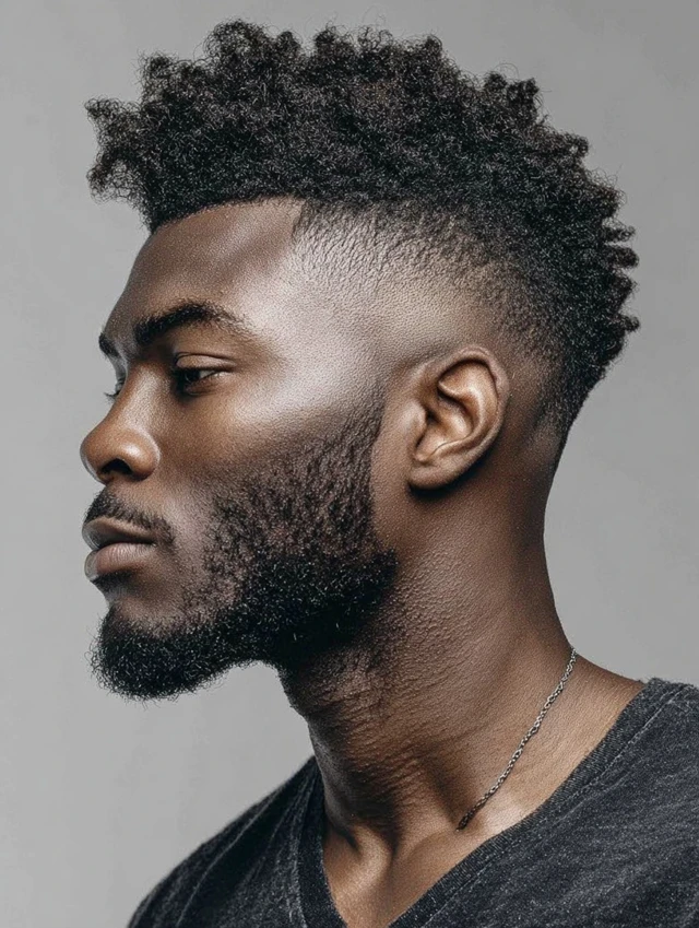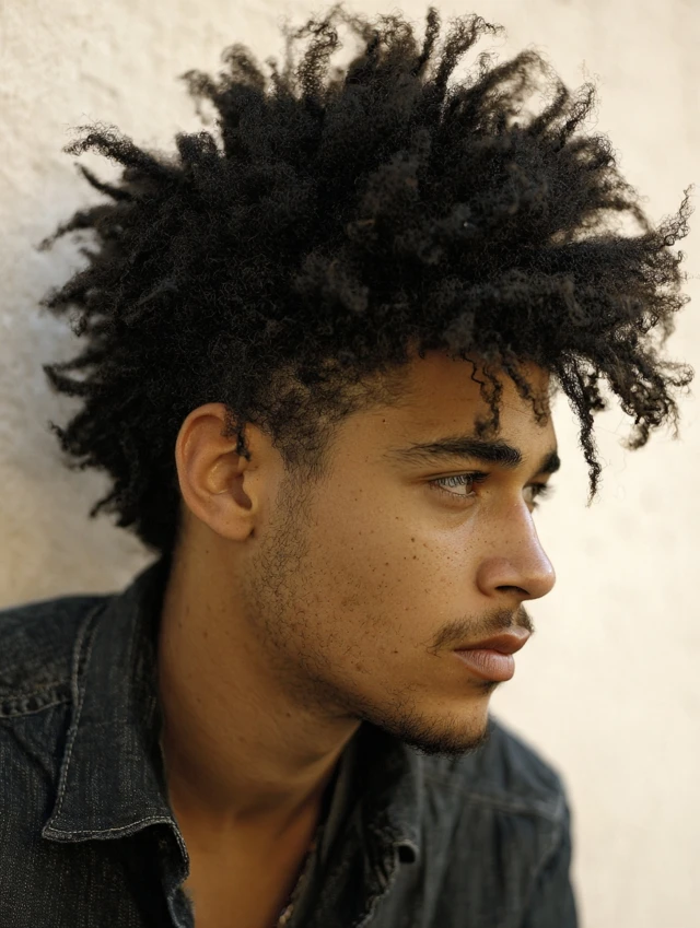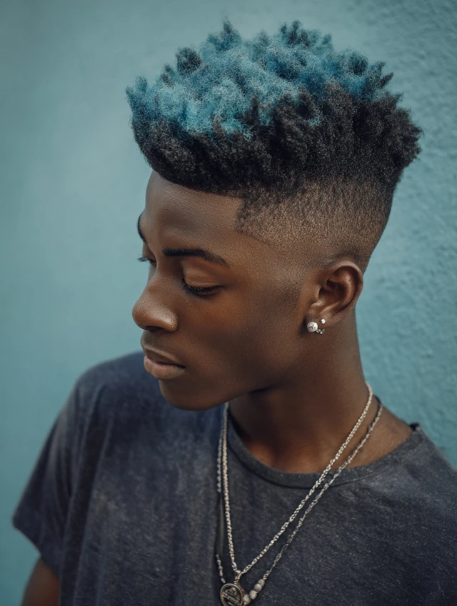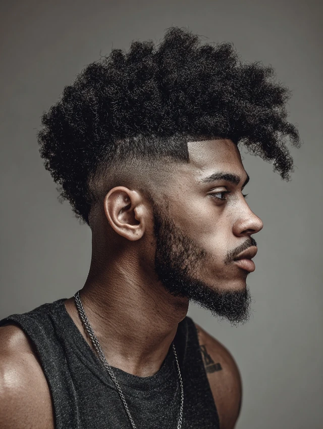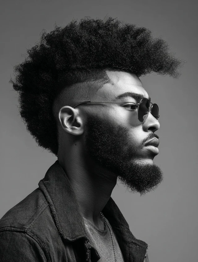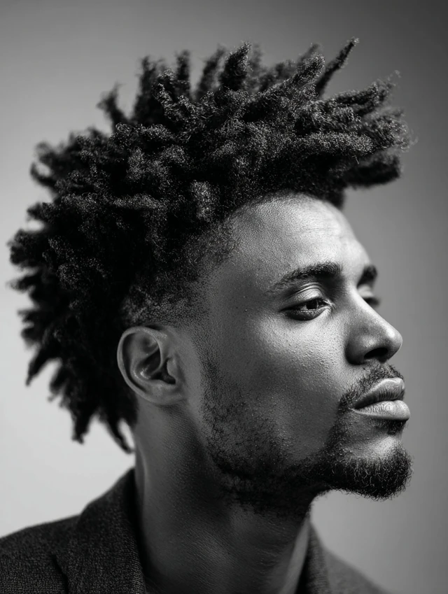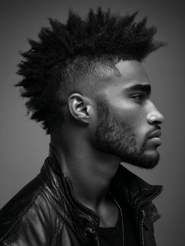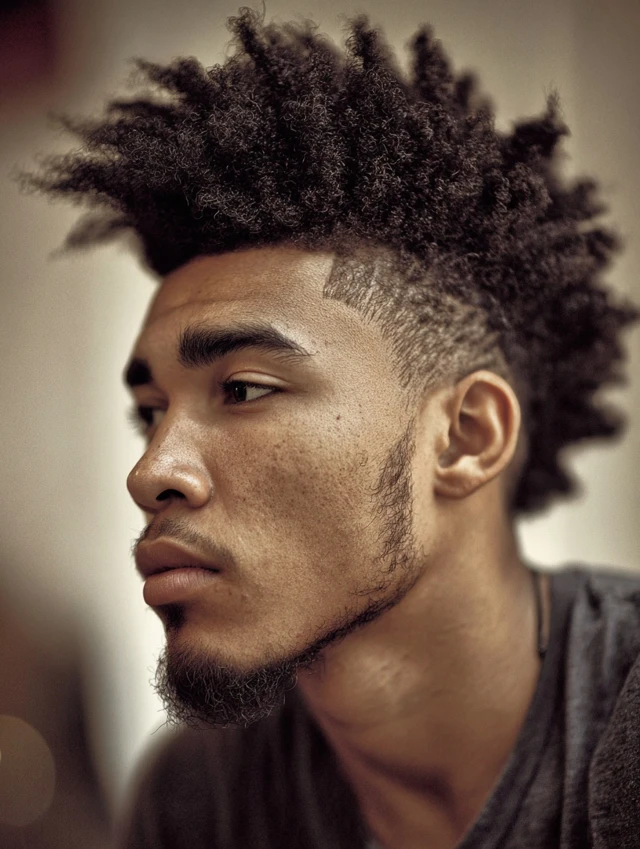 A spiky afro adds texture, volume, and a rebellious vibe. It’s perfect for men who want a bold, unconventional hairstyle.