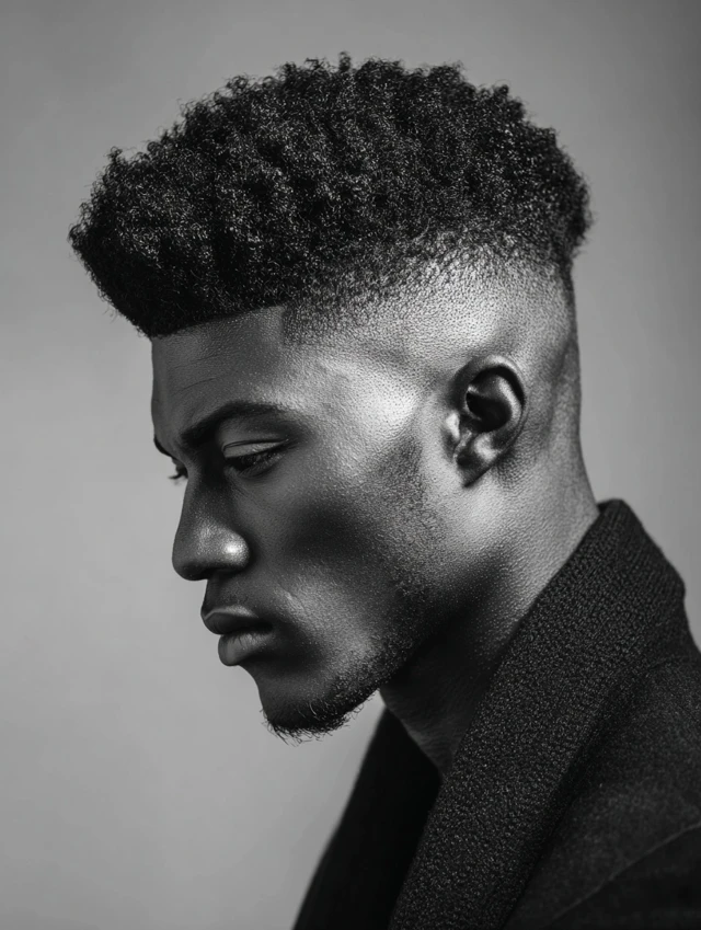 Shaving the sides while leaving a full afro on top creates a dramatic contrast and enhances the hair’s natural volume.