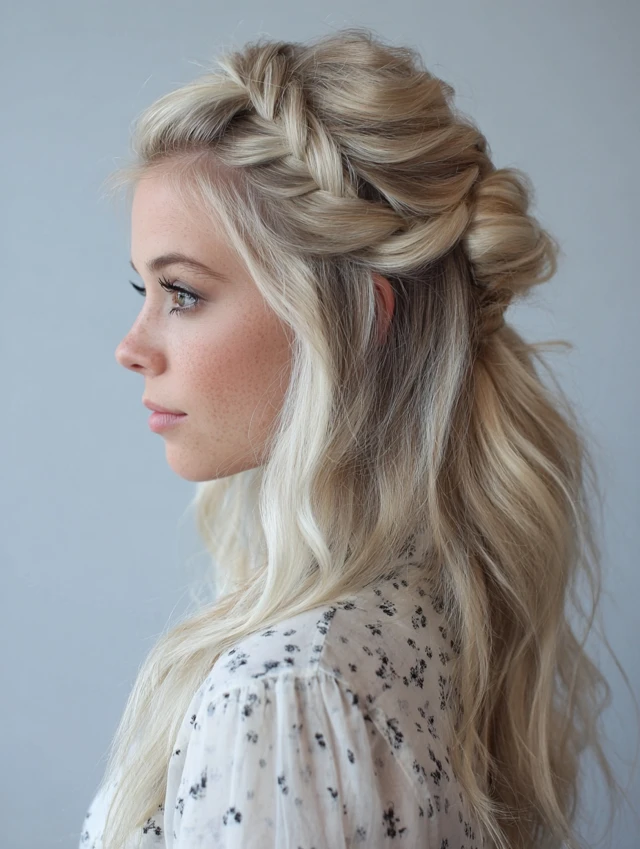 Half-up styles keep hair partially secured while letting soft strands frame the face, creating a balance of function and cuteness.