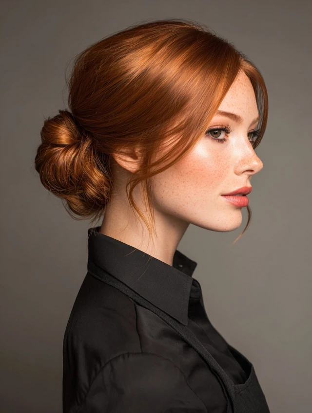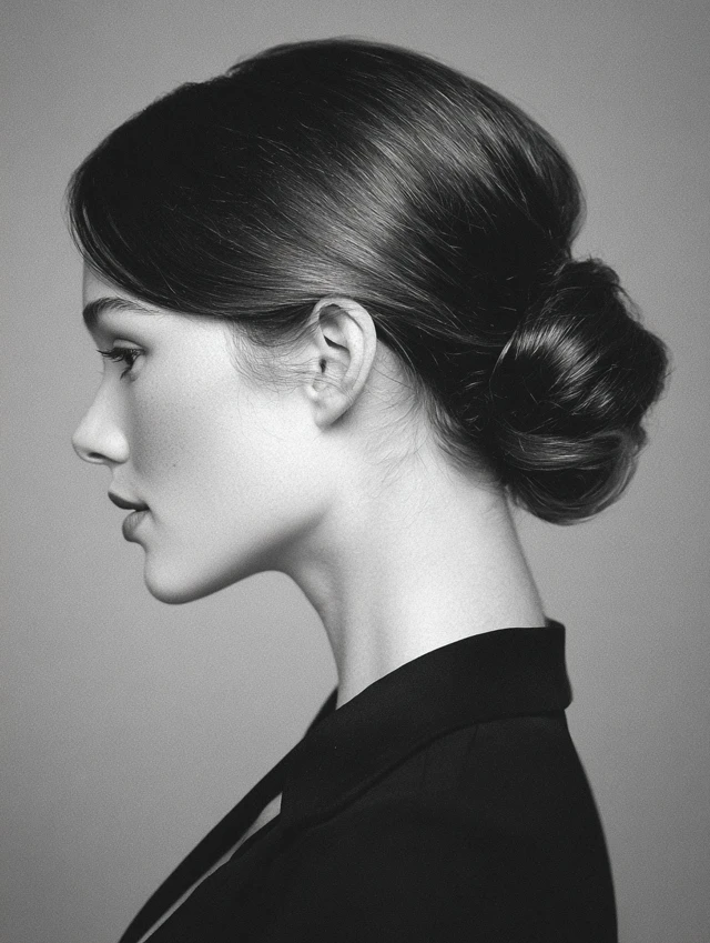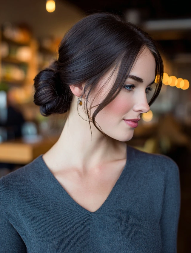 A low bun keeps hair secure and neat while remaining stylish and approachable.