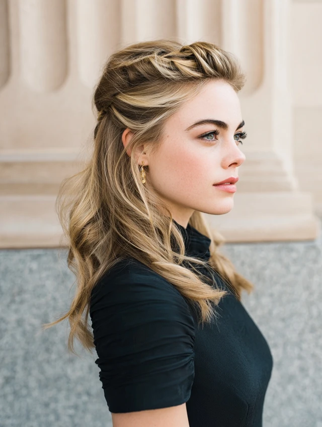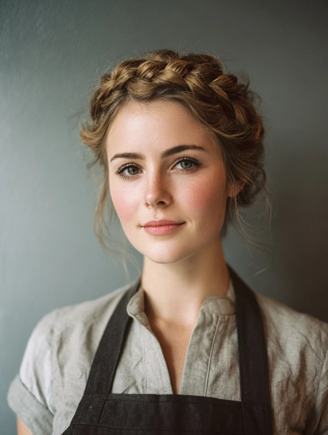 A braided crown secures hair away from your face and adds an elegant, feminine detail without being high-maintenance.