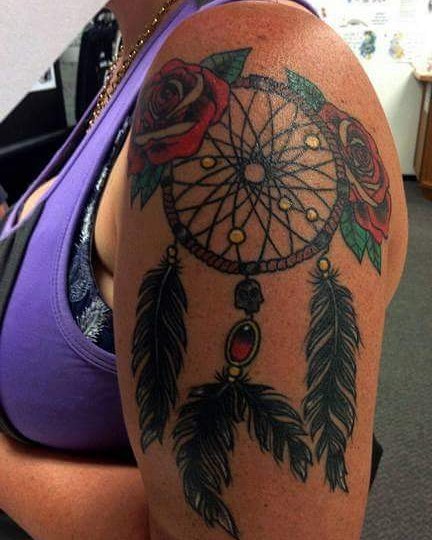 Shoulder tattoos are perfect for showing strength and confidence, and this piece commands attention. The roses add a romantic element, symbolizing love and passion, while the dreamcatcher keeps its classic protective meaning. This design works beautifully for someone who wants a strong, visible tattoo that blends beauty with symbolism.