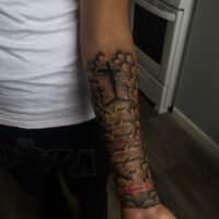 The forearm placement keeps the tattoo visible, serving as a personal reminder of protection and positivity. Its simplicity makes it versatile—perfect for someone who prefers a refined, understated look while still embracing the dreamcatcher’s traditional meaning of filtering out negativity and encouraging good dreams.