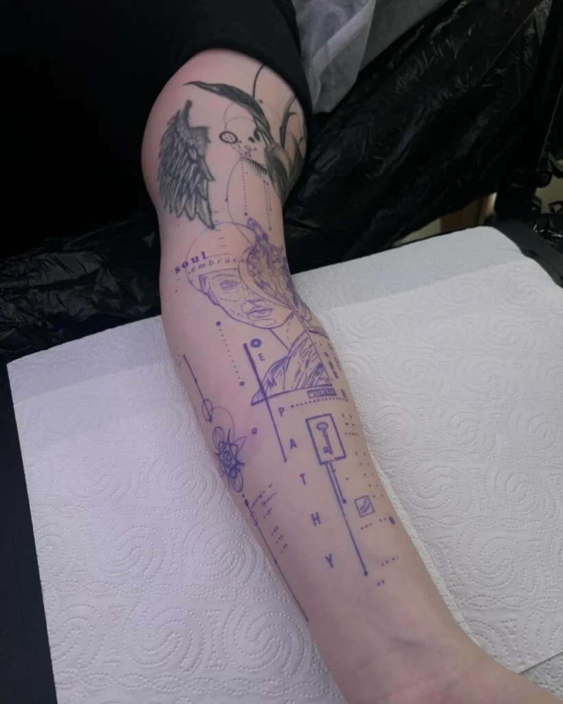 Wrist and Forearm: These are go-to spots for minimalist designs, especially for symbols, initials, and small line drawings. They’re visible and expressive, making them perfect for tattoos that serve as daily reminders.