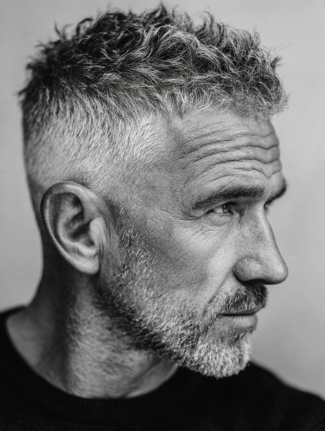 A crew cut is timeless, low-maintenance, and ideal for fine hair. Texturing the top prevents flatness and adds natural fullness.