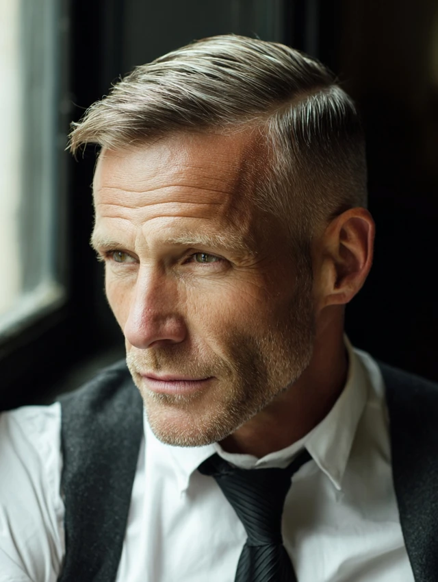 Side parts, textured quiffs, or classic comb-overs add sophistication.