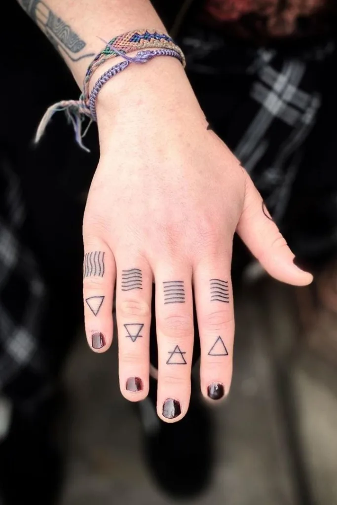 Geometric finger tattoos are perfect for those who appreciate clean lines, symmetry, and structured designs. These tattoos often feature intricate shapes such as triangles, squares, and circles that come together to form patterns that are visually striking. Geometric designs can symbolize balance, harmony, and unity, and they are a popular choice for people seeking a modern, minimalist aesthetic.