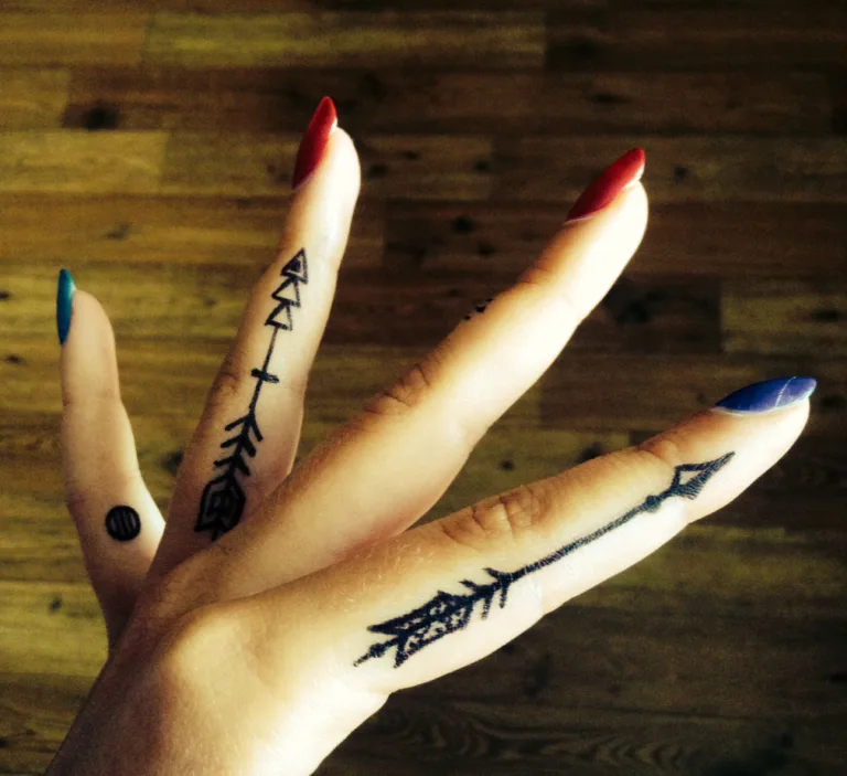Arrows are simple yet powerful symbols, representing direction, focus, and progress. Tattooed on the finger, an arrow design can serve as a subtle reminder to stay focused on one’s goals and to always move forward. Arrows are often chosen to represent strength, courage, and determination, and they can be personalized with additional elements, such as hearts, feathers, or initials.