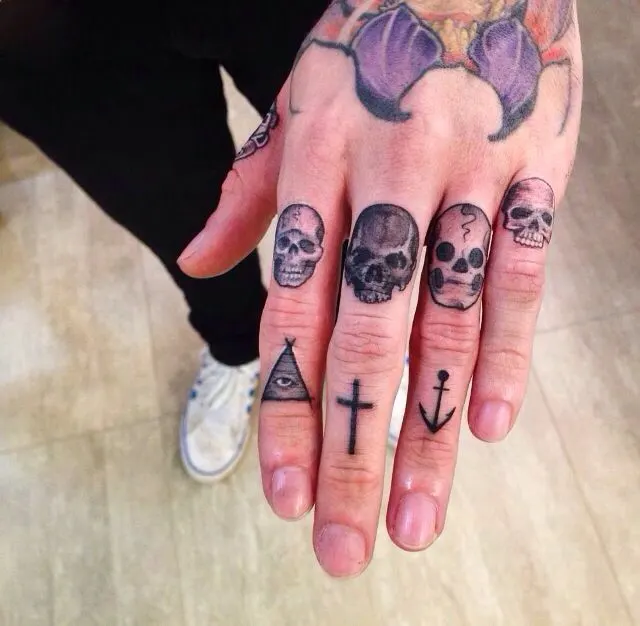 Skull tattoos are bold, edgy designs that often represent mortality, danger, or rebellion. On the fingers, skull tattoos are typically small but still impactful, often used to convey strength, fearlessness,