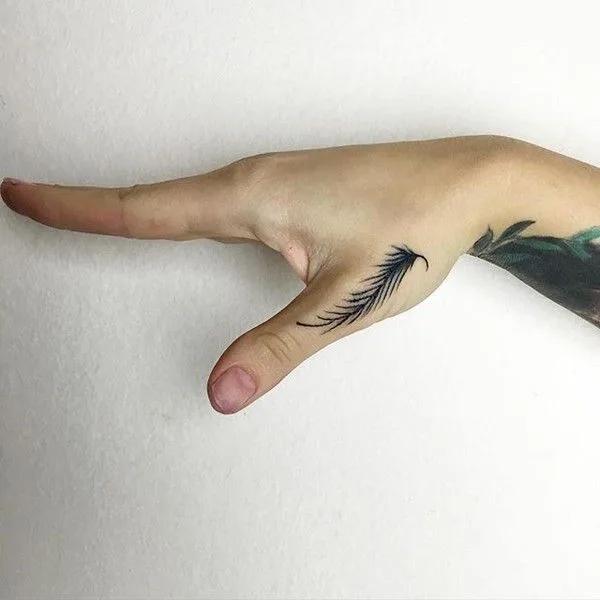Feather tattoos on the fingers are delicate and represent freedom, spirituality, and the ability to rise above challenges. Feathers are often associated with birds, which symbolize flight and the unrestricted ability to pursue one’s goals. These tattoos are typically small, fine-lined, and often done in a minimalist or watercolor style.