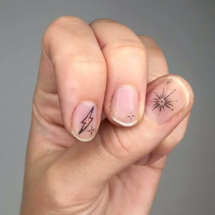 The tops of fingers offer space for elegant and straightforward designs such as stars, small flowers, or tiny arrows.