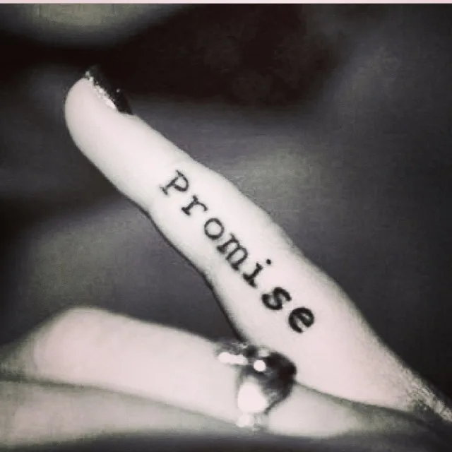 This simple yet powerful tattoo features the word “Promise” inked along the inside of the finger, symbolizing loyalty, love, and commitment. The placement makes it intimate and discreet, only revealed in close moments or through intentional display.