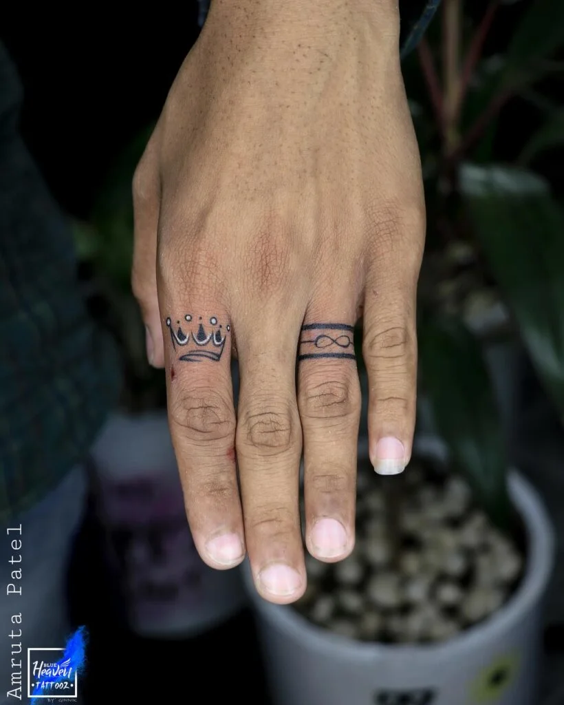 Designed as ring-style tattoos, these pieces mimic jewelry but carry deeper meaning, ensuring permanence beyond physical adornment. Together, they are perfect for couples, partners, or anyone wishing to express both strength and eternity. Finger placements make the symbolism impossible to ignore, adding a touch of elegance while making a lifelong statement of devotion and power.