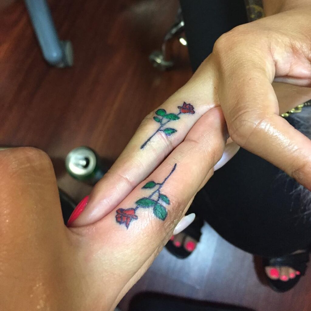 Perfect for couples, close friends, or family members, these tattoos carry a sense of unity and lasting bond. Finger tattoos are intimate and always visible, meaning this design serves as a daily reminder of affection and loyalty, wrapped in the timeless elegance of a rose.
