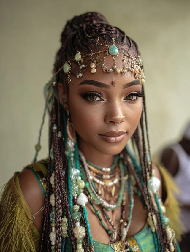 - Beads and Accessories: Cowry shells, wooden beads, or metallic cuffs