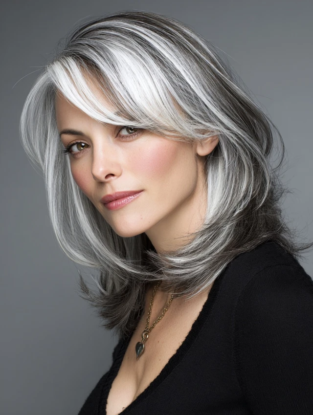 Gray hair with highlights feels sophisticated, chic, and contemporary.