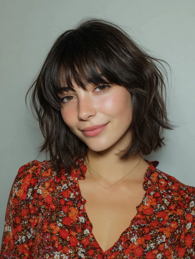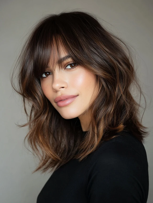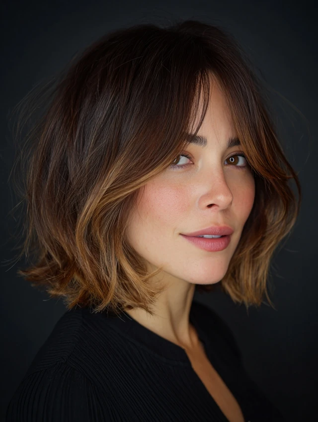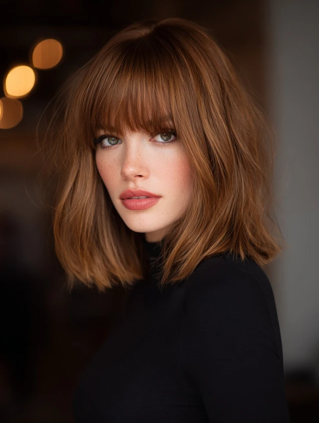 Adding bangs creates instant face framing and increases the overall perception of fullness. Curtain bangs blend seamlessly into the lob.