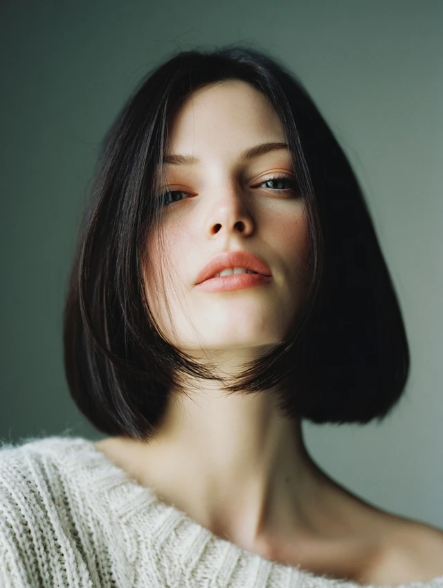 A blunt, straight-across lob creates the illusion of thicker hair instantly. The clean perimeter adds weight and structure.