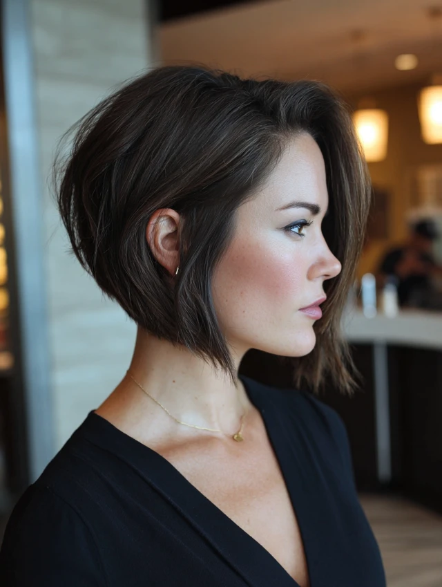 A slightly stacked back gives height and structure, making hair look fuller and more lifted at the crown.