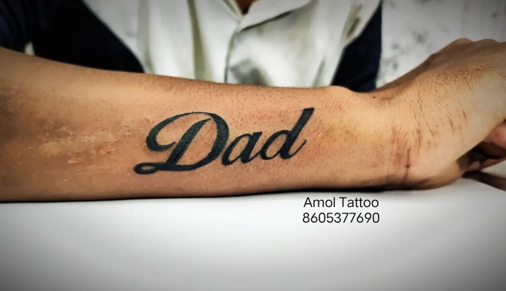 This tattoo stands out with bold, black lettering spelling “Dad” in a strong, elegant script. The design is simple yet powerful, making it a timeless tribute that carries deep meaning without the need for extra symbols. Its boldness reflects strength and permanence, much like the role of a father in one’s life.