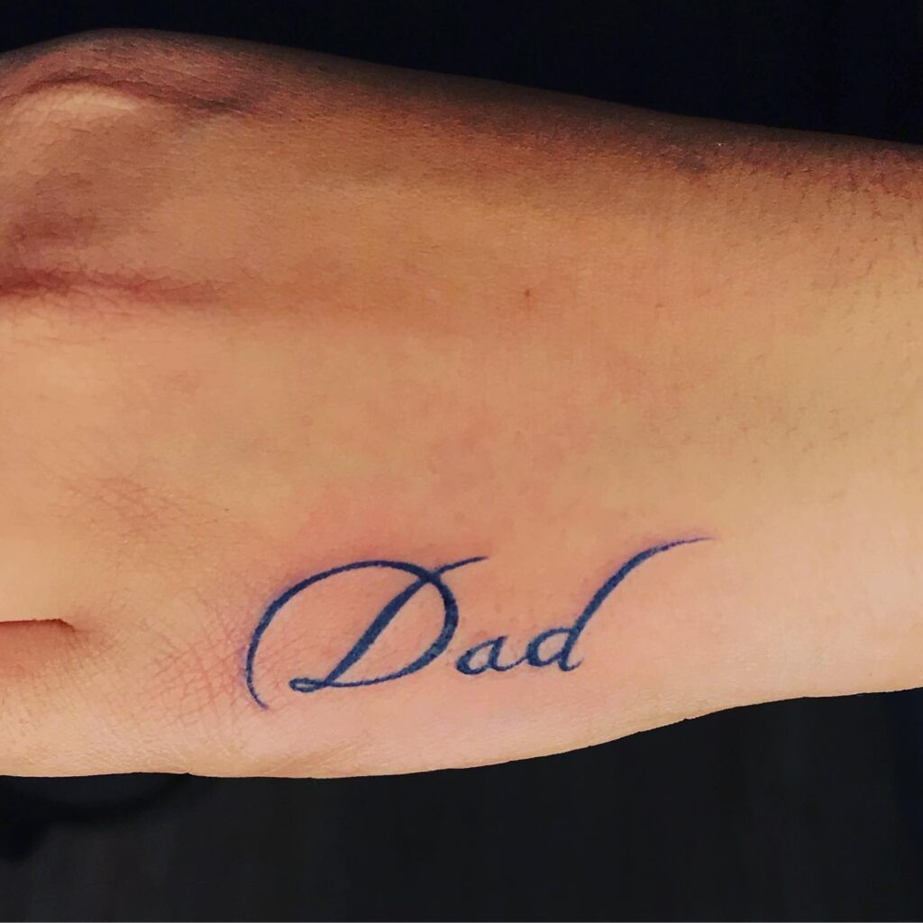 Its simplicity makes it perfect for those who prefer minimalist tattoos but still want to carry a meaningful tribute. Placed visibly on the hand, it remains a daily reminder of connection and affection. The soft flow of the letters adds elegance, making it a beautiful yet understated way to celebrate a father’s presence.