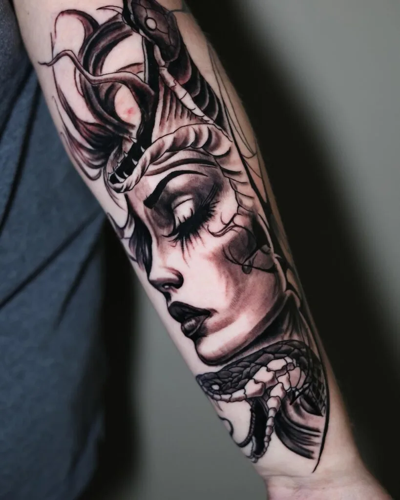 12. Statuesque Medusa Forearm Tattoo
