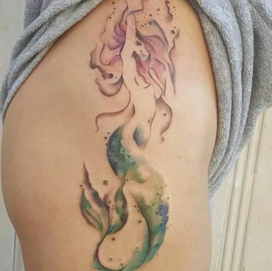 Watercolor Flow Mermaid Tattoo