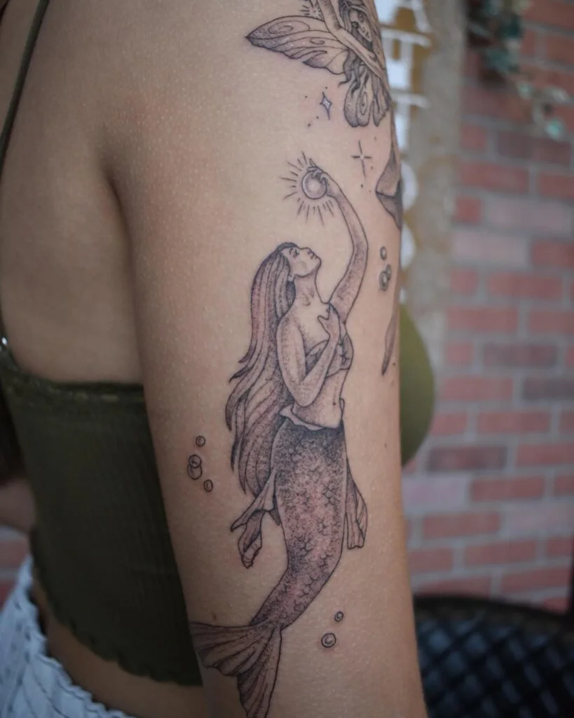 From ethereal designs inspired by folklore to bold, edgy interpretations, mermaid tattoos offer an incredible range of possibilities. Some are delicate and dreamy, others fierce and wild, while many embody feminist strength, transformation, or spiritual symbolism. Mermaid ink is often infused with layers of meaning—relating to love, identity, femininity, or the balance between vulnerability and power.