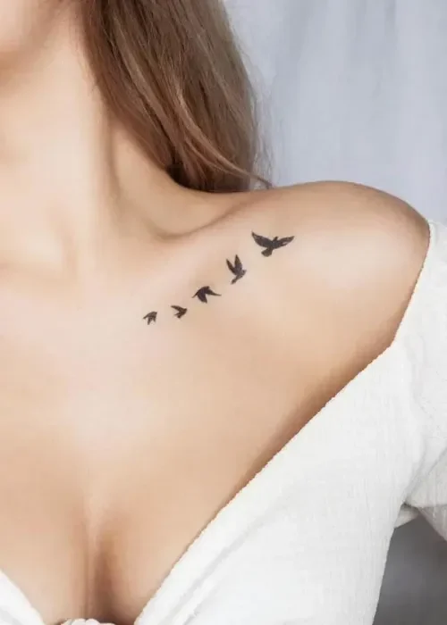The collarbone area extends from the neck toward the shoulder, offering a larger canvas for more expansive tattoo designs. Tattoos in this location are often bold and can be extended towards the chest or shoulder, creating an elegant, flowing effect. This area is especially great for statement tattoos, such as a large rose, a bird in flight, or an intricate piece of script. The collarbone is an excellent choice for a tattoo that serves as a focal point of the body’s upper half, drawing attention to the neck and chest area. It can also be easily concealed by clothing or revealed depending on the occasion, making it a versatile and attractive placement for many types of designs.