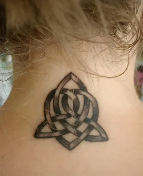 Celtic knots are intricate, interwoven patterns with no beginning or end, symbolizing eternity, unity, and the interconnectedness of all things. A Celtic knot tattoo on the neck can be designed as a simple loop, or it can be more complex with twists and turns that flow around the neck like a chain or collar. These designs are deeply rooted in Celtic culture and often carry spiritual or familial meanings. The continuous lines of a Celtic knot are perfect for wrapping around the neck, creating a harmonious flow that can be adapted to suit various styles. Whether you want a design to represent unity with loved ones, eternal love, or spiritual continuity, the Celtic knot is a timeless and meaningful symbol. This tattoo works well on the neck due to the natural circular shape of the knot, allowing it to blend seamlessly with the body’s contours while offering both visual and symbolic appeal.