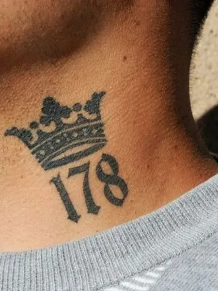 A crown tattoo on the neck is often associated with royalty, power, and self-worth. It symbolizes authority, leadership, and confidence, making it a bold choice for someone who wants to express their sense of inner strength. Placing a crown at the nape of the neck or along the side can create a regal, commanding presence. The design can range from a simple, minimalist crown to a detailed, ornate crown with jewels, making it easily adaptable to the wearer’s style. The neck’s shape naturally lends itself to this design, as the crown can sit at the top, evoking a sense of prestige and majesty. For those who see themselves as leaders or who want a reminder of their own power and worth, a crown tattoo can be both empowering and eye-catching. This tattoo works particularly well for individuals who embrace their self-confidence and want to display it outwardly.