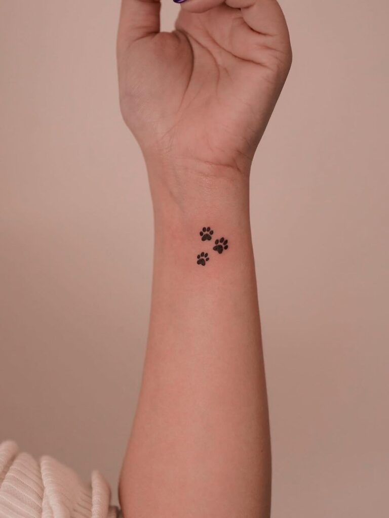Its dainty size makes it ideal for a first tattoo or for anyone who prefers discreet, elegant ink. The three prints can symbolize multiple pets, stages of life, or simply a love for animals in general, making it a versatile and heartfelt design.