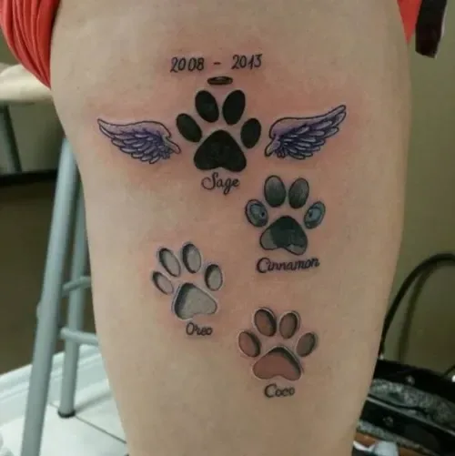It’s a versatile design suitable for small placements like the wrist, ankle, or behind the ear. Adding initials, dates, or a tiny heart to the design enhances its personal significance. The simplicity and symbolism make this tattoo a popular choice for pet lovers.