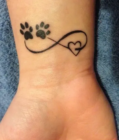 An infinity symbol with a paw print is a meaningful representation of your eternal bond with your pet. This design often features a simple infinity loop with a small paw print incorporated into the curve, symbolizing unending love and connection.